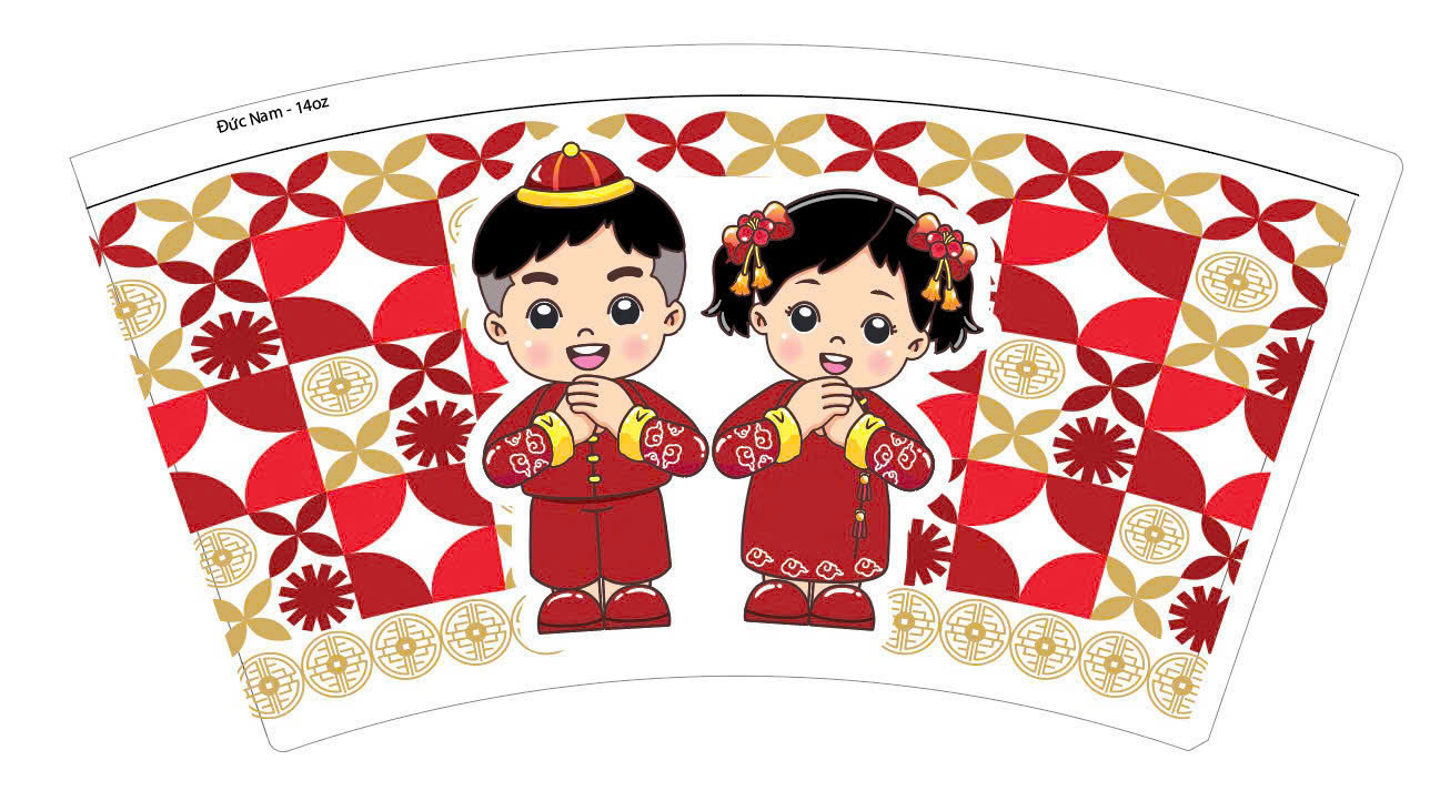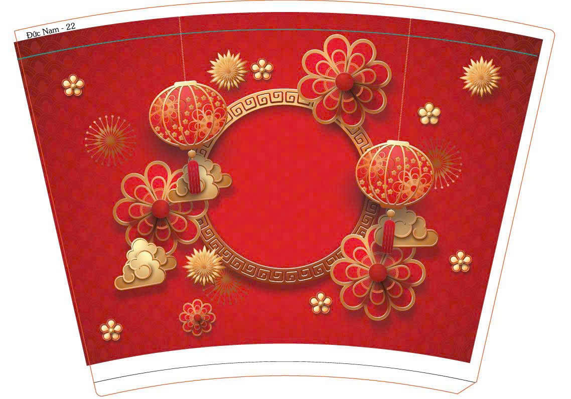 Mẫu họa tiết truyền thống trên ly giấy tết