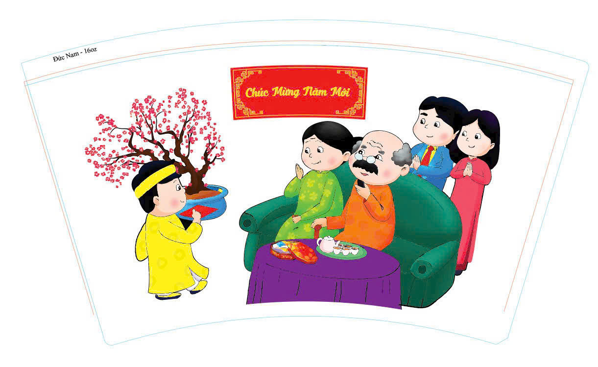 - Tùy chỉnh thiết kế hoàn toàn: Bạn có thể tích hợp logo thương hiệu với họa tiết Tết truyền thống như hoa mai, hoa đào, câu đối, bánh chưng một cách hài hòa