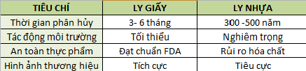 Để hiểu rõ hơn về lợi ích của thay thế ly nhựa, chúng ta cần nhìn vào bảng so sánh cụ thể: